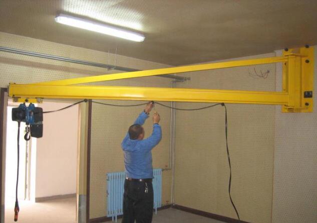 墙壁式悬臂起重机又称墙壁吊,壁柱式悬臂起重机。可分为:BX型墙壁式旋臂吊 和BX-JKBK型墙壁式旋臂吊 起重量125KG到3000KG。起升高度为3米。        悬臂起重机是近年发展起来的中小型起重装备,结构独特,安全可靠,具备高效、节能、省时省力、灵活等特点,三维空得内随意操作,在段距、密集性调运的场合,比其它常规性吊运设备更显示其优越性。 本产品广泛用于各种行业的不同场所。悬臂起重机工作强度为轻型,起重机由立柱,回转臂回转驱动装置及电动葫芦组成,立柱下端通过地脚螺栓固定在混凝土基础上,由摆线针轮减速装置来驱动旋臂回转,电动葫芦在旋臂工字钢上作左右直线运行,并起吊重物。起重机旋臂为空心型钢结构,自重轻,跨度大,起重量大,经济耐用。 内置式行 旋臂吊MODE型走机构,采用带滚动轴承的特种工程塑料走轮,摩擦力小,行走轻快;结构尺寸小,特别有利于提高吊钩行程。